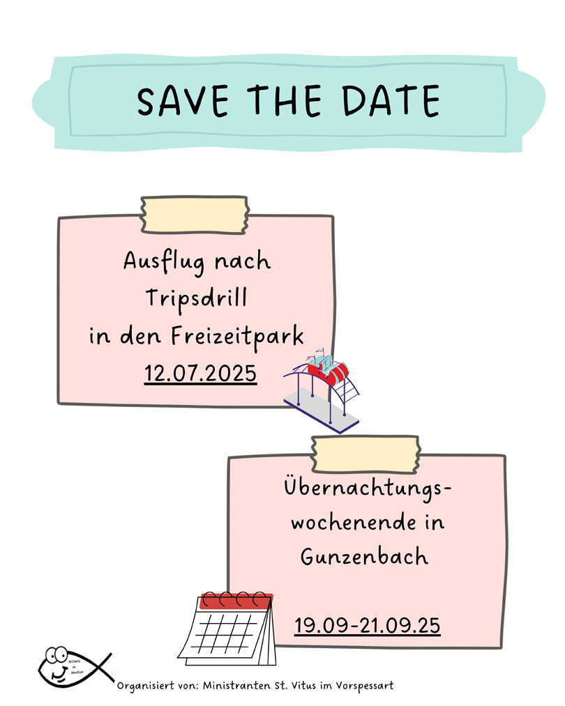 Liebe Ministrantinnen und Ministranten unserer Pfarreiengemeinschaft, bitte merkt Euch schon einmal folgende Termine vor!
