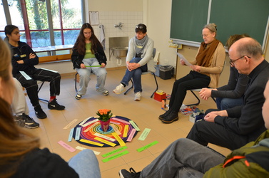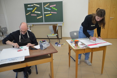 Die rund dreistündige gestalterische Schaffenszeit der Schülerinnen nutzte Bischof Dr. Franz Jung außerdem dafür, alle Schülerinnen in ihren Workshops zu besuchen, sich mit ihnen auszutauschen und ins Gespräch zu kommen. Begeistert präsentierten die jungen Mädchen und Frauen ihrem „Special Guest“ dabei ihre entstandenen Werke.