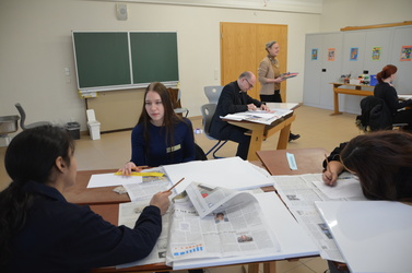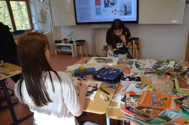 Neben der Möglichkeit, Leinwände zum Thema „Demokratie“ zu gestalten, hatten sich die Lehrkräfte der Von-Pelkhoven-Schule weitere Workshops für ihre Teilnehmerinnen ausgedacht. So gestalteten einige ein Visionboard, auf dem sie ihre Träume, Ziele und Wünsche zu Papier brachten. Andere bedruckten Taschen mit positiv besetzten Demokratiebegriffen, nähten Mäppchen oder beschäftigten sich auf kreative Weise mit der Frauenbewegung in der Weimarer Republik.