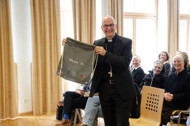 Die Abschlussrunde mit Präsentation der Ergebnisse aus den Workshops nutzte neben Gesamtleiterin Anja Sauerer auch Bischof Dr. Franz Jung, um sich für den abwechslungsreichen und impulsgebenden Vormittag in St. Ludwig bei den Schülerinnen und Lehrkräften sowie allen Beteiligten zu bedanken. Den Josefstag mit dem Thema „Mädchen und Frauen“ zusammenzubringen, sei auf den ersten Blick gar nicht so leicht. Schaue man aber genauer hin, fällt auf, dass der Heilige Josef Maria und seinen Sohn Jesus angenommen und durch alle Herausforderungen und Gefahren begleitet hat. Als stiller Teilhaber habe er bedingungslos auf die Weissagung aus seinem Traum vertraut und die Situation angenommen. So sei er zum starken Unterstützer der Frauen und der Familie geworden. „Danke für die Einblicke und das kreative Zusammenwirken am heutigen Schul-Aktionstag. Danke an euch, liebe Schülerinnen, an die Lehrkräfte und Schwestern des Antonia-Werr-Zentrums, dass ihr den Schul-Aktionstag auf so wunderbare Weise inhaltlich gefüllt habt“, so der Bischof. Nun freue er sich auf viele weitere sozial-caritative Projekte und Aktionen, die im Heiligen Jahr 2025 in der Diözese noch angestoßen werden.