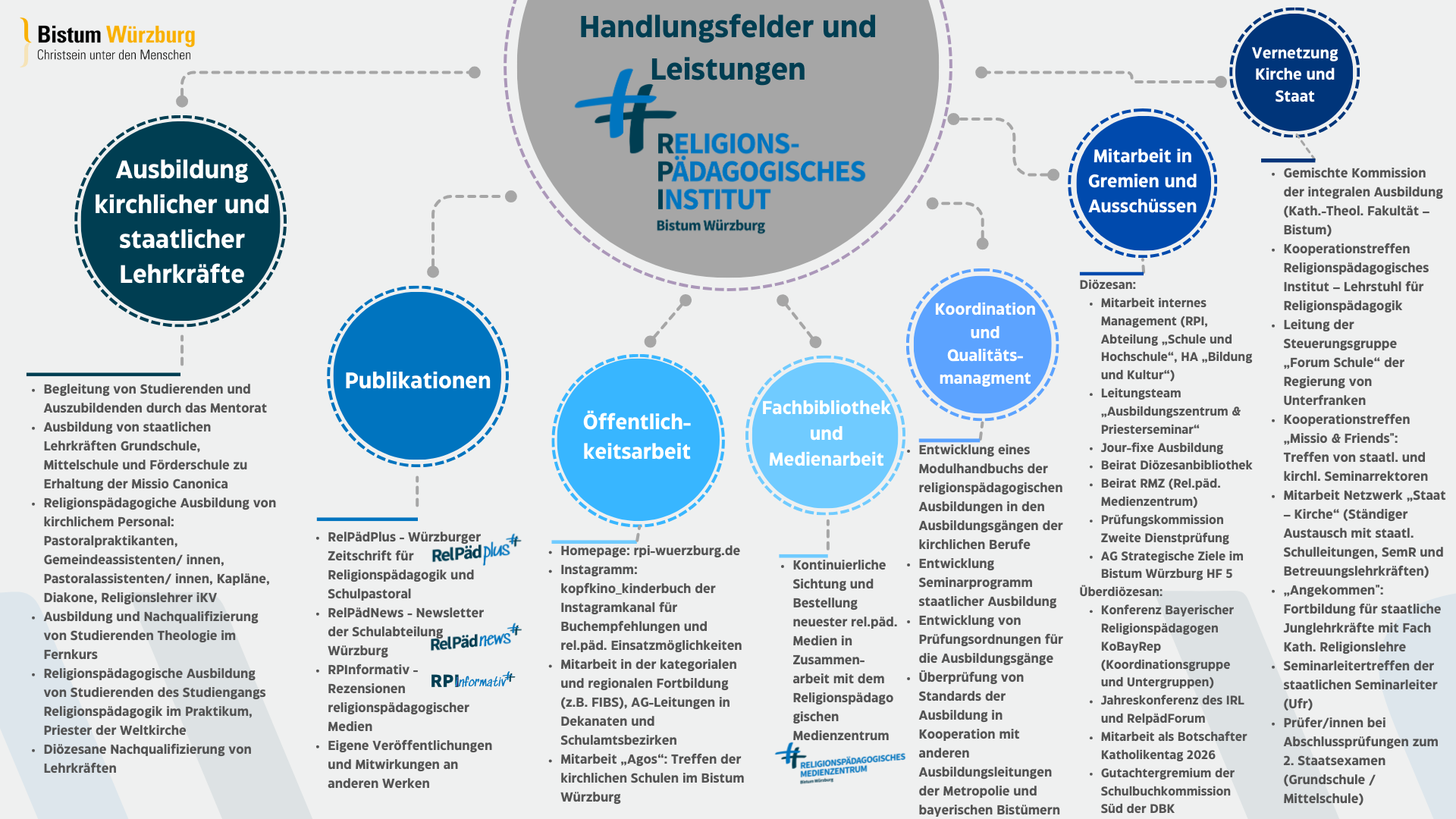 - Vernetzung mit kirchlichen (z.B. Abteilung Schule und Hochschule) und staatlichen Stellen (Universität Würzburg, Regierung von Unterfranken, staatliche Seminare u.a.)