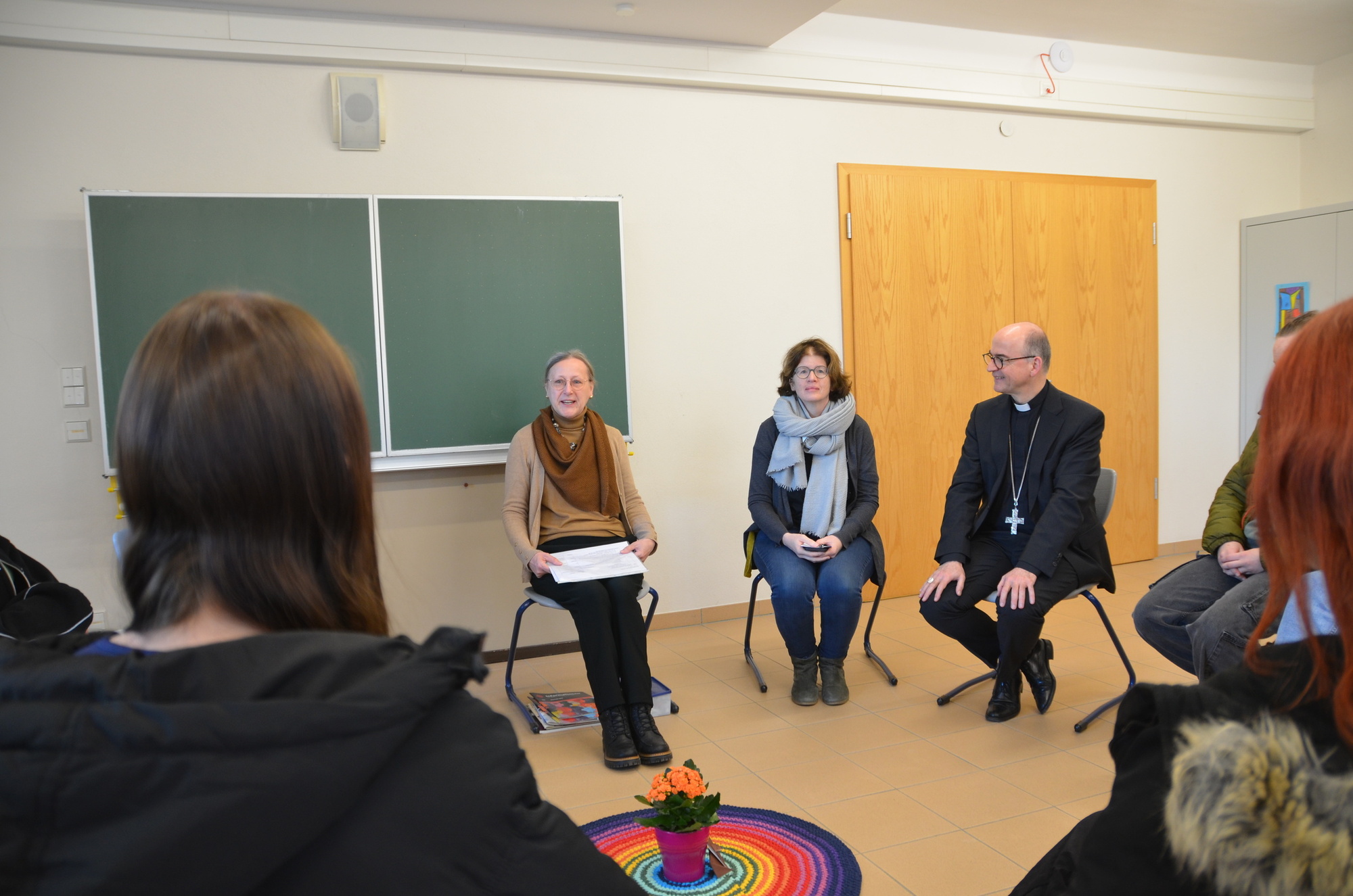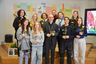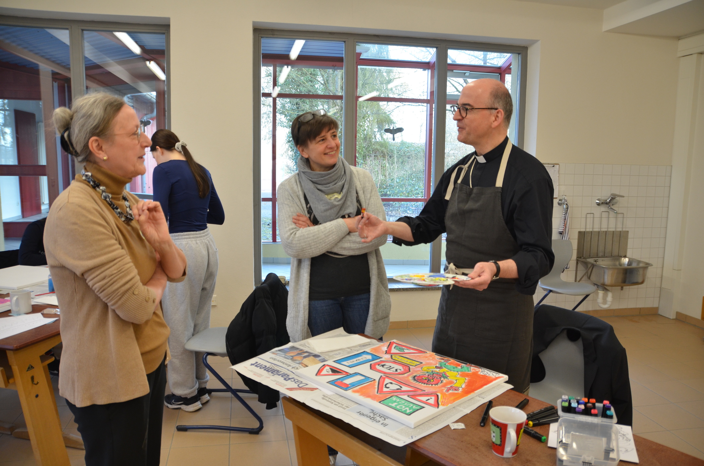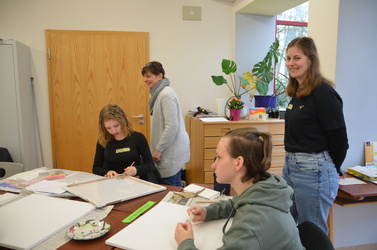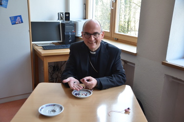 Die rund dreistündige gestalterische Schaffenszeit der Schülerinnen nutzte Bischof Dr. Franz Jung außerdem dafür, alle Schülerinnen in ihren Workshops zu besuchen, sich mit ihnen auszutauschen und ins Gespräch zu kommen. Begeistert präsentierten die jungen Mädchen und Frauen ihrem „Special Guest“ dabei ihre entstandenen Werke.
